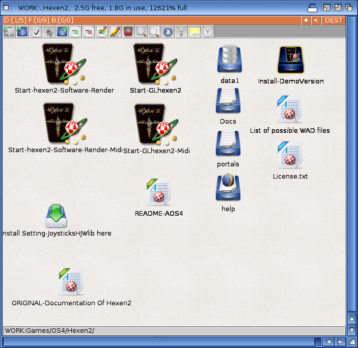 First up is Rise of the Triad - an old PC gaming first person shooter. A favourite of mine! Run the shareware version unless you have the original Wad files from the Full version - the Readme-OS4 explains this. This game does not need the Dual Display setup with 9250 to play it.